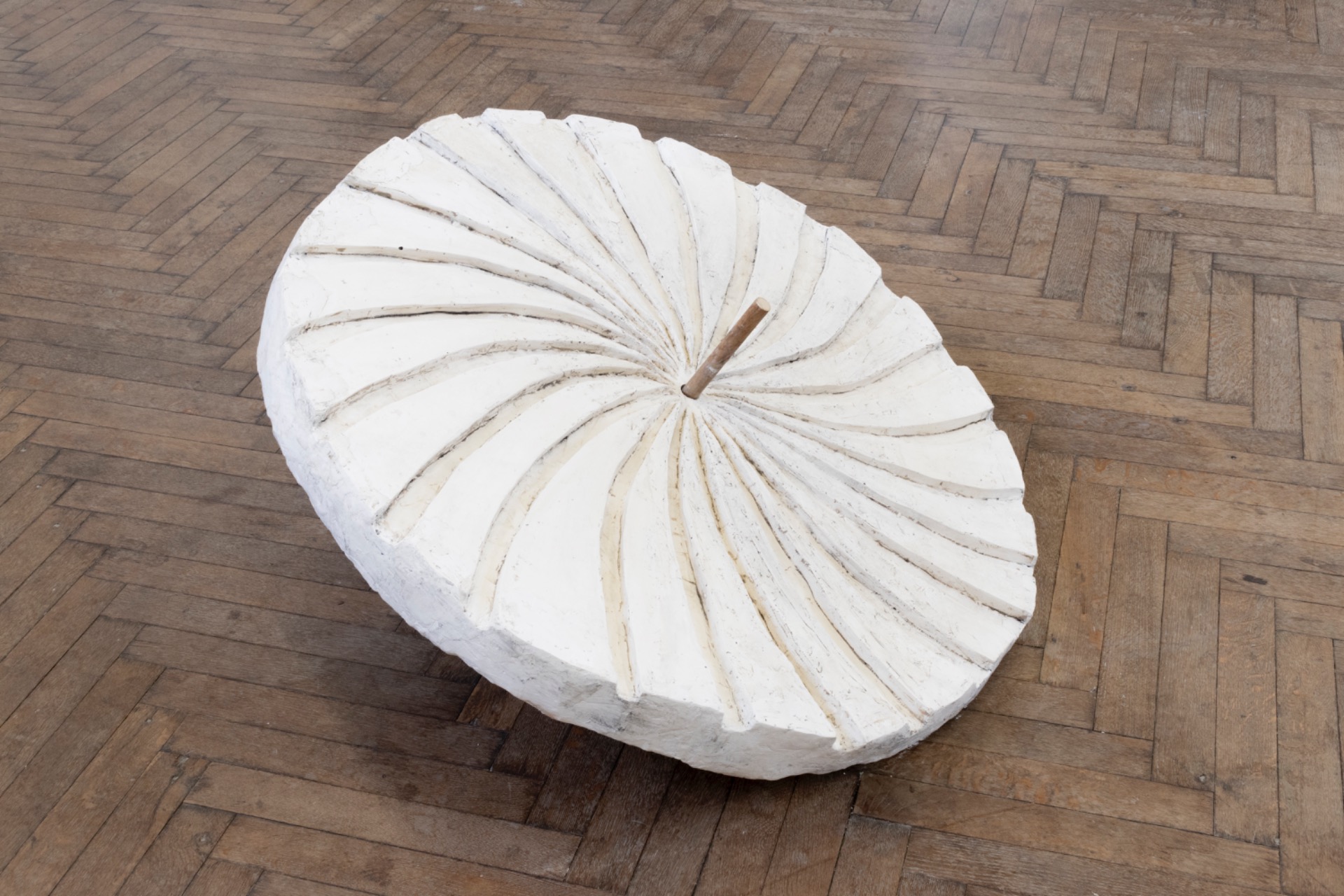 Molenaarssteen, 2024, gypsum and wood, diameter: 110 cm.