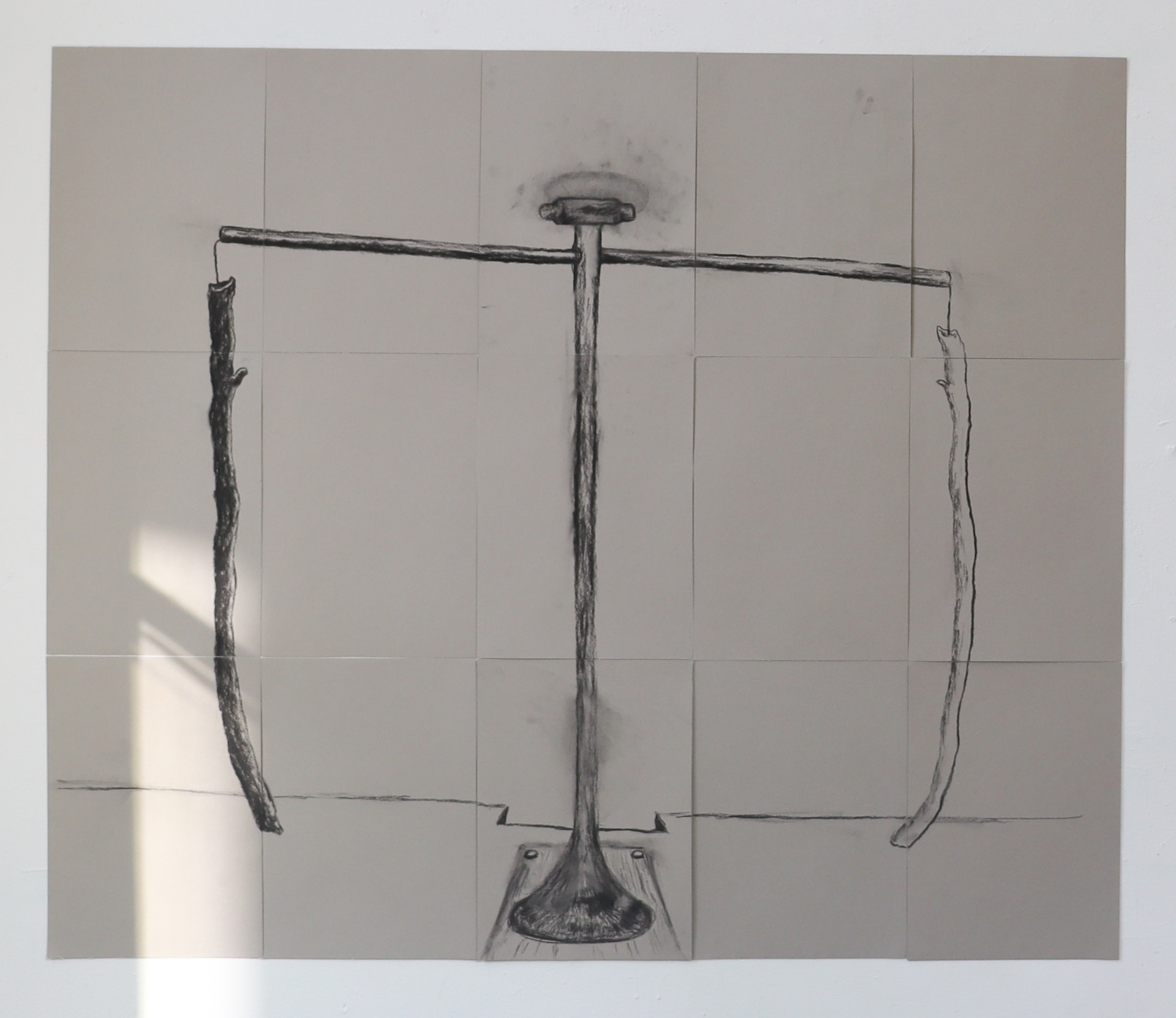 Compounds, 2023, charcoal drawing, 105 x 89,1 cm.